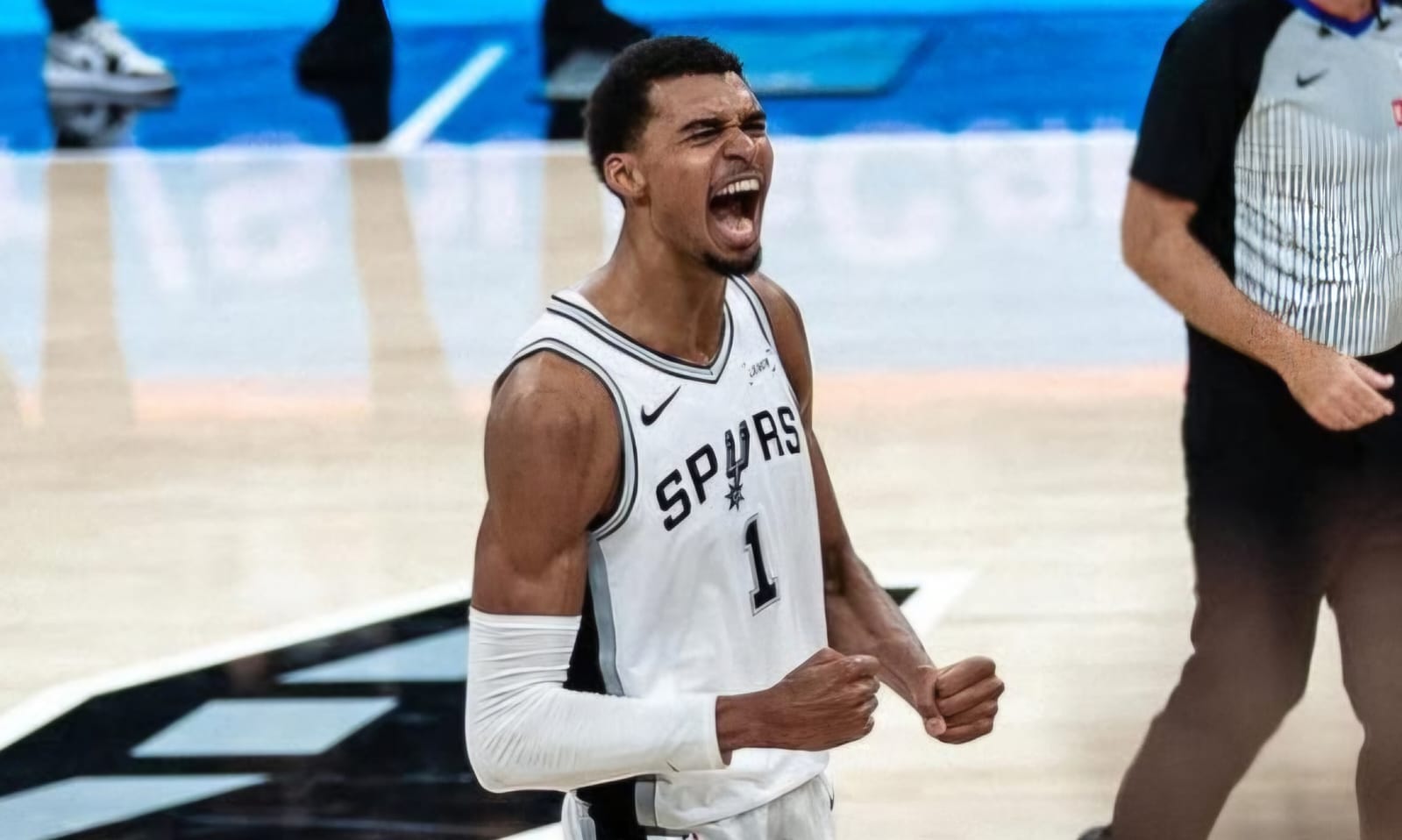 Até o momento da saída, Wembanyama somava cinco pontos, quatro rebotes e um bloqueio em cerca de 12 minutos de atuação.